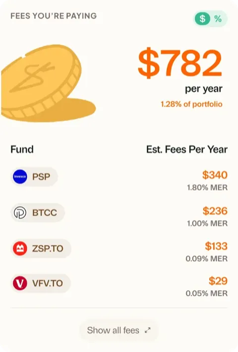 Mutual funds can charge well over 1% a year in fees. You'll see every fee across every fund, and where you could pay less.